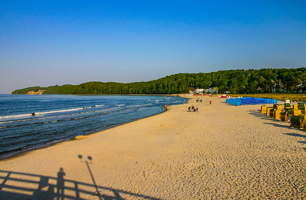 Spätsommerlicher Sonnenuntergang am aufgeräumten Ostseestrand in Binz.